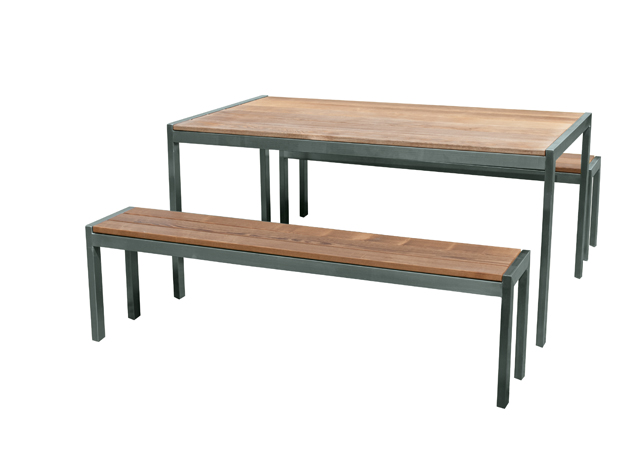 Edelstahlbank mit Holzbelag: