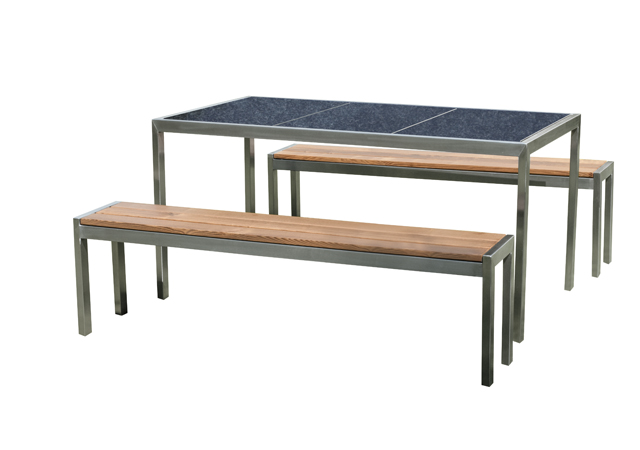 Edelstahlbank mit Holzbelag: Edelstahl Oberfläche geschliffen,